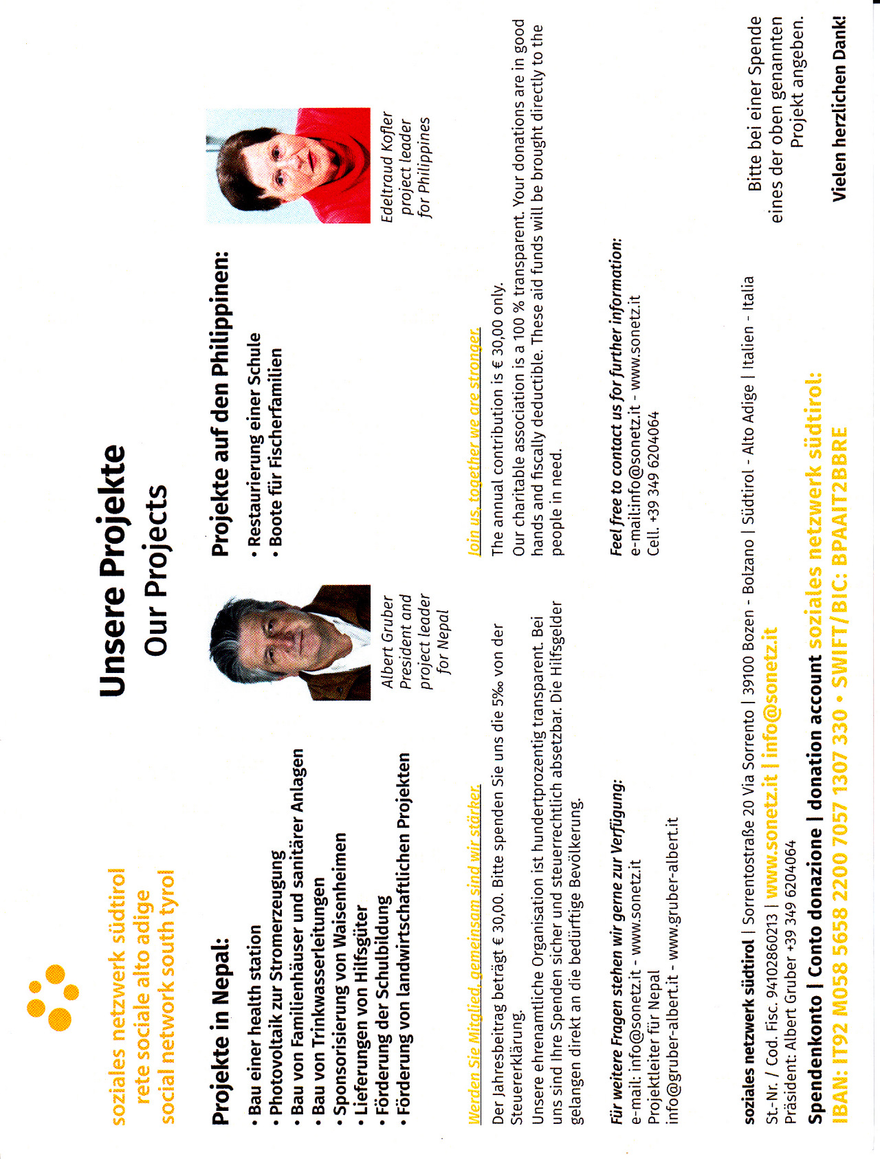Hier findest du alle Projekte, die wir als "soziales netzwerk südtirol" initiiert haben oder in Partnerschaft mit anderen Organsiationen unterstützen: